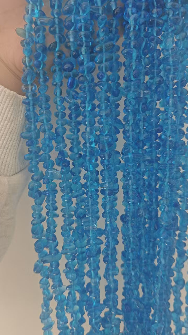 An irregular blue glass chain measuring approximately 80cm in length and 5-8mm in size, suitable for making bracelets, necklaces, and decorations