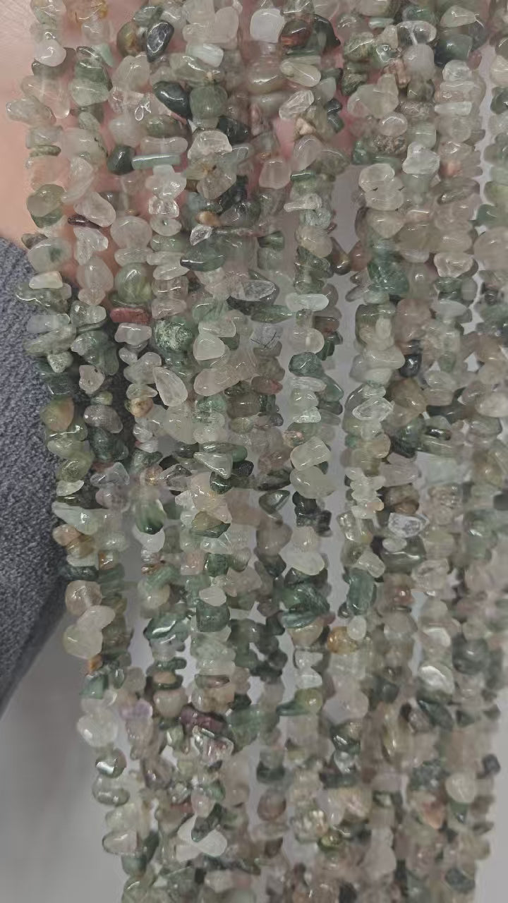 A green hair crystal irregular long chain with a length of about 80cm and a size of 5-8mm, suitable for making bracelets, necklaces, and decorations
