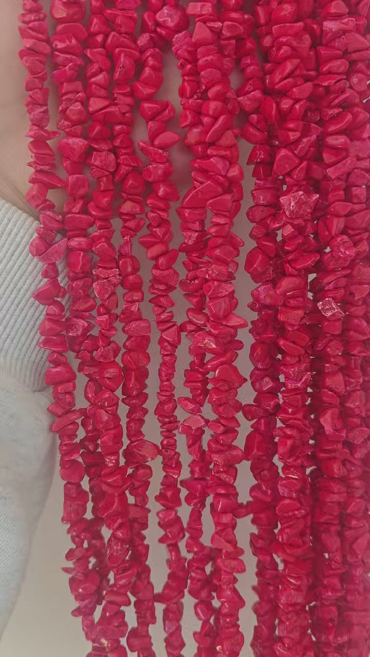 An irregular dyed red pine broken stone chain with a length of about 80cm and a size of 5-8mm, suitable for making bracelets, necklaces, and decorations